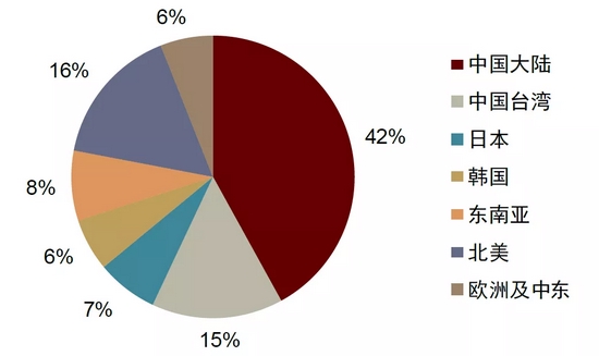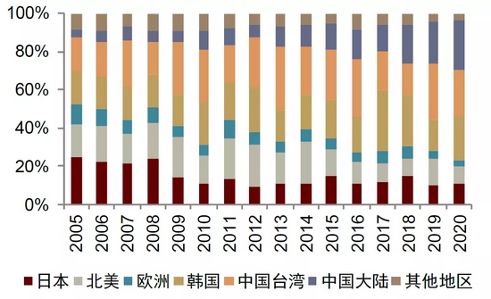 按照地域拆分,根据SEMI数据,2020年全球半导体设备销售额从高至低分别为中国大陆(26.3%)、中国台湾(24.1%)、韩国(22.6%)、日本(10.6%)、北美(9.2%)和欧洲(3.7%)。