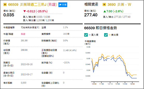 周三恒指相关权证的平均引伸波幅约22.1%,按日继续下调。个股方面,腾讯、港交所、舜光、京东等相关认购证的引申波幅按日有所调升;相反,美团、阿里、平安、快手、吉利等相关认购证的引申波幅则见调降。