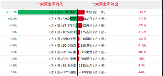 淡仓(认沽证及熊证)方面,周三腾讯相关淡仓单日录得约4,797万港元资金净流入,药明、平安等相关淡仓单日亦录得少量资金净流入;相反,比迪相关淡仓单日录得约561万港元资金净流出,友邦、舜光等相关淡仓亦见部分资金净流出。