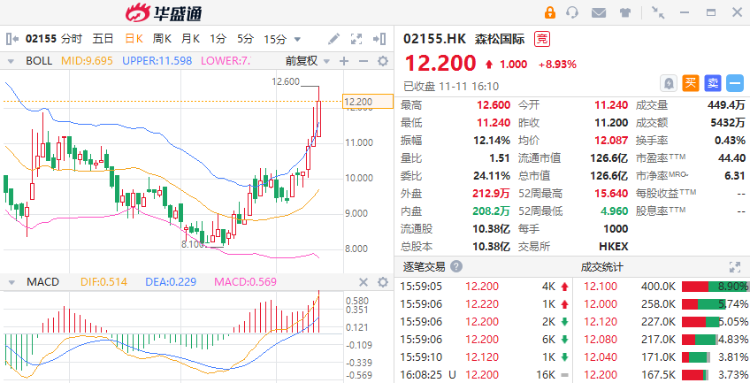 - 森松国际是国内领先的核心压力设备及综合解决方案供应商,业务涉及制药、新能源、半导体等多个细分领域,公司股价自10月18日逼近低点后,连日来持续回升,月涨幅近50%。
