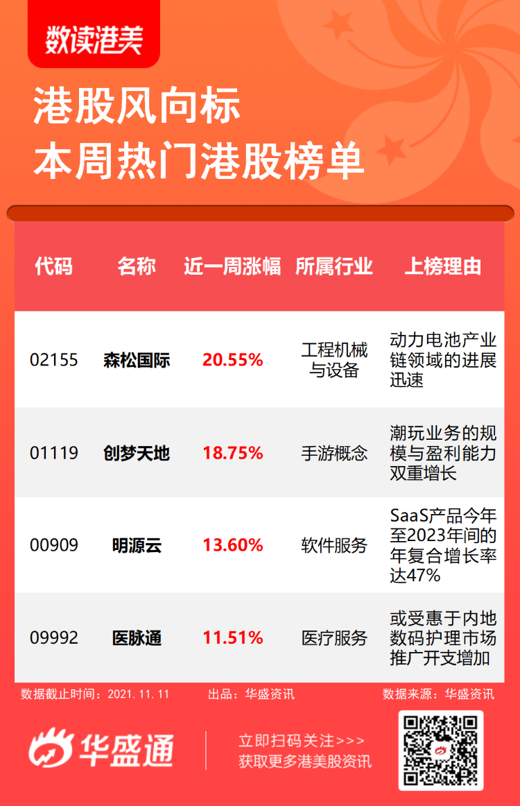 - 利好叠加,创梦天地连续一周涨幅近20%,一个月累计大涨45%,最新总市值达82.5亿港元。另外,受元宇宙题材的影响,中泰证券发研报称,手游板块表现活跃,建议关注关注三类细分行业:待版号开启发布后,行业监管靴子落地且前期超跌行业,如游戏;四季度处于全年旺季的行业,如营销;符合年轻人娱乐消费趋势的行业,如潮玩。