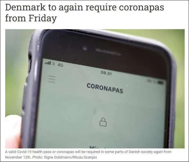 丹麦重新引入包括“新冠护照”,报道截图