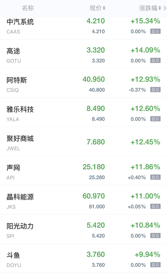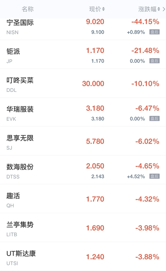 (截图来自新浪财经APP 行情-美股-中概股热门板块)下载新浪财经APP