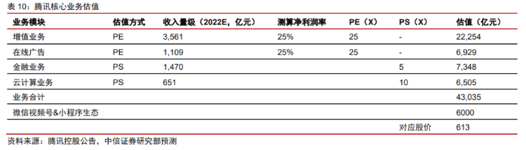 在不计算投资业务的情况下,腾讯的市值大概为4.9万亿元,对应股价613港元。
