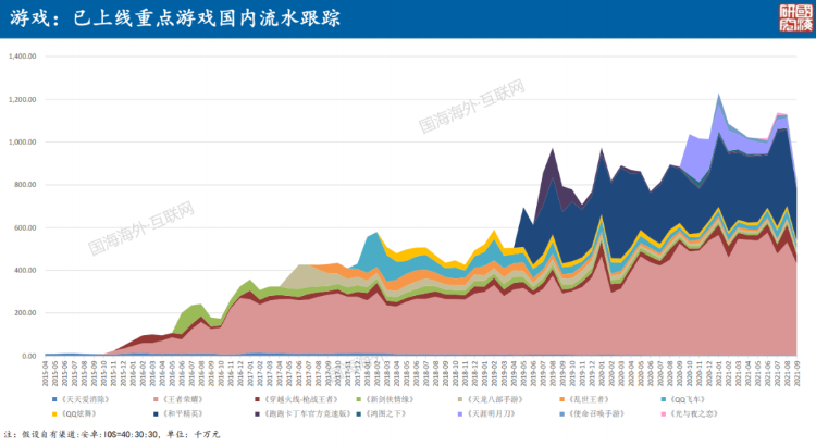 腾讯没有公开过热门游戏的流水,假如按照国海证券之前做的高频数据调查,王者荣耀的月流水大概在50亿元/月,和平精英月流水25亿元/月左右,其他游戏的月流水在2-4亿不等;