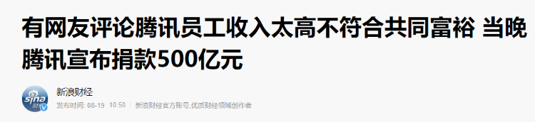 还记得上半年的财报公布时,腾讯因为8.49万的超高平均月薪,被网友高呼员工收入太高,不符合共同富裕,当晚腾讯就推出"共同富裕"计划,要投资500亿元。