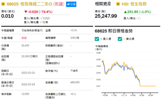 2、看错方向:恒指瑞通二二熊,周四被强制收回。