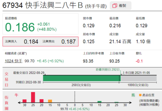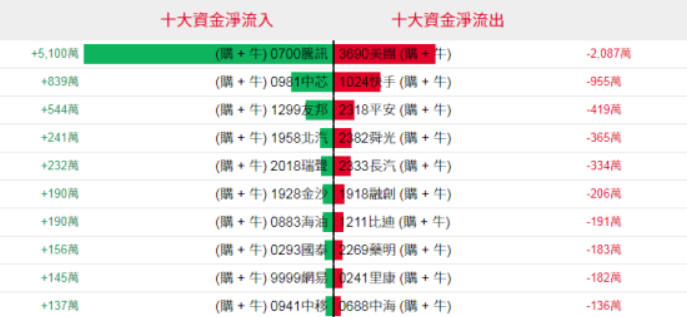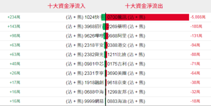 淡仓(认沽证及熊证)方面,周四快手、招行、哔哩及平安等相关淡仓单日录得少量资金净流入;相反,腾讯相关淡仓单日录得约5,008万港元资金净流出,药明、阿里、港交等相关淡仓亦见少量资金净流出。