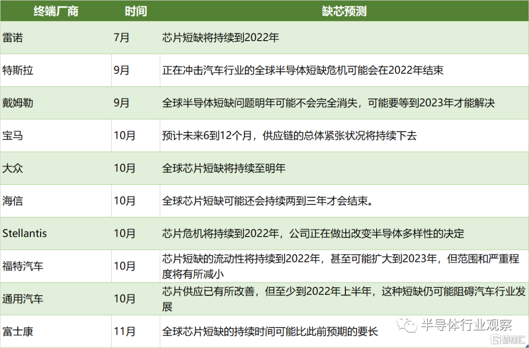 可以说,车企对芯片恢复供需平衡都抱有很大的期盼。除戴姆勒和福特之外,多数汽车都认为芯片短缺持续至明年。