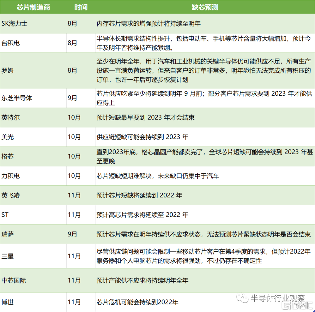 长电科技技术市场总监刘明亮也在8月接受采访时表示,预计芯片短缺状况将持续到明年年底。这是一个非常粗略的预测,背后有两个原因。