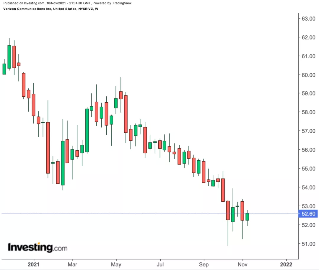 而在电信运营商中,Verizon(威瑞森电信) 是固定收益追求者不错的选择。2007年以来,该公司一直在不断提高股息以回报投资者。公司目前支付0.64美元/股,相当于每年2.56美元的派息。