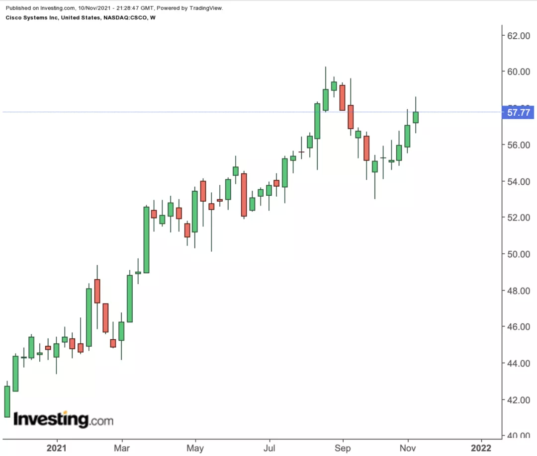 所以,思科是一家可靠的分红公司,目前每季度支付0.37美元,每年每股支付1.48美元。尽管他只连续派息11年,尚未成为所谓‘派息巨头’的一员,但这并不阻碍它成为那些寻求收入增长的投资者一个具有吸引力的选择。