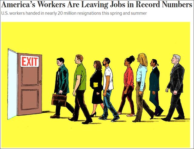 美国《华尔街日报》:美国工人辞职率创下新的纪录