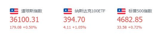 上周五美股收高,道指涨179.08点,或0.50%,报36100.31点;纳指涨156.68点,或1.00%,报15860.96点;标普500指数涨33.58点,或0.72%,报4682.85点。上周美股三大股指均录得跌幅,道指下跌0.63%,纳指下跌0.69%,标普500指数下跌0.31%。
