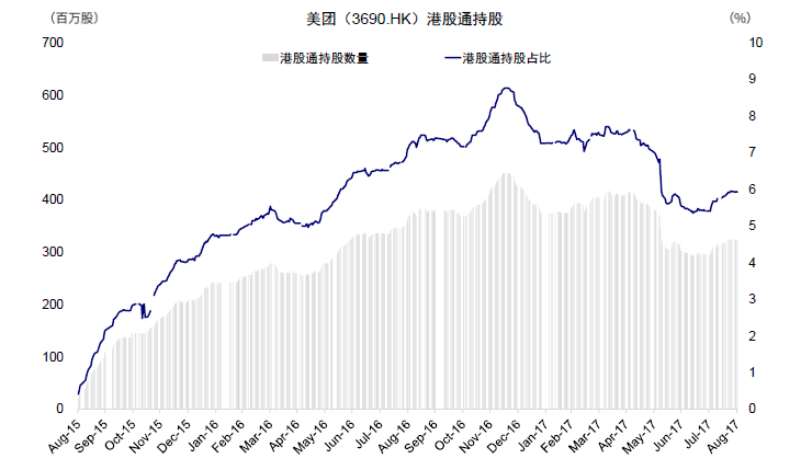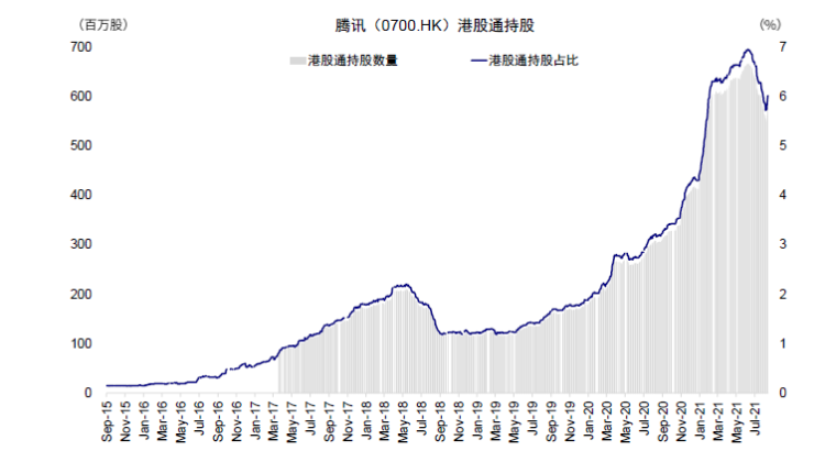 图表29:腾讯南下持股在8月落指5.72%后有所回升,目前持股比例为6.32%