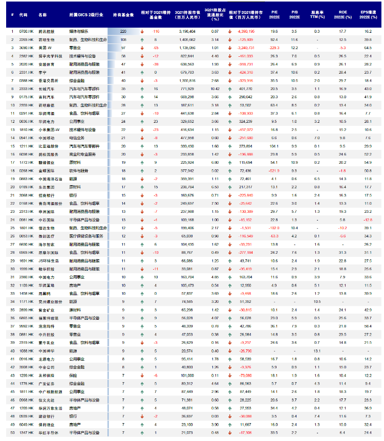 图表26:主动偏股型基金3Q21重仓的港股(1/2)