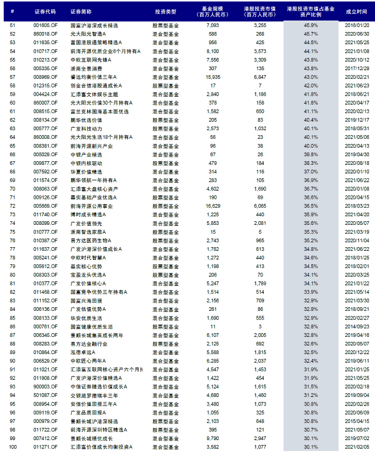 图表14:港股持仓市值前100支大陆主动偏股型公募基金(1/2)