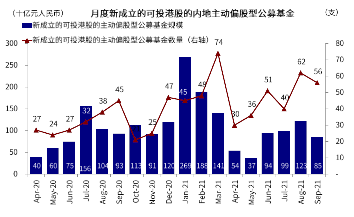 图表8:可投港股内地公募基金三季度发行节奏回暖,共新增299支,月均新发100支