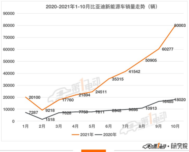 比亚迪在2021年开了挂,这是不争的事实。今年3月,我们预测了“月销过8万”这一目标。尽管如此,当10月销售数据显示,这一切已成现实时,仍然让我们感到震惊。