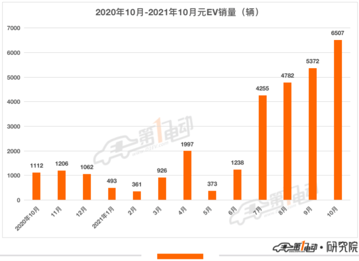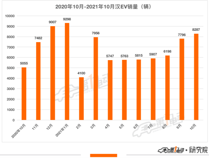 具体而言:3月同比增量为10,732辆(同比增长152.7%),4月提升为14,144辆(同比增长182.5%),5月提升到16700辆(同比增长213.8%),6月跳升至26,367辆(同比增长294.7%),7月来到31,844辆(同比增长328.4%),8月来到39992辆(同比增长366.5%),9月来到43,792辆(同比增长265.6%),10月再度跳升到61,983辆(同比增长344%)。