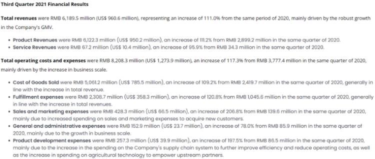 由于注重了效率的提升,同时对产地直采、订单农业、自有品牌等投入有了明显成效,Non-GAAP口径下,叮咚买菜该季度的亏损率环比缩窄了5.3个百分点。