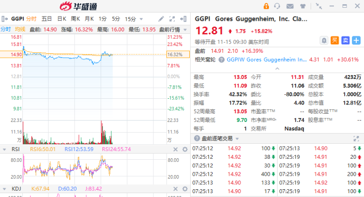 SPAC公司GGPI盘前涨超16%