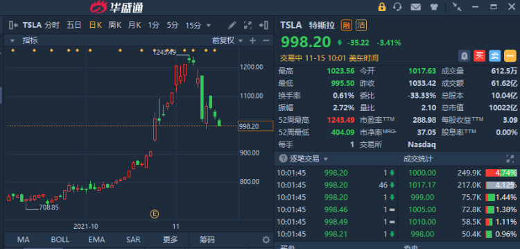 华盛资讯11月15日讯,美股盘初,特斯拉跌超3.4%,再度失守1000美元关口。马斯克自11月8日以来累计出售约636万股特斯拉股票,占其此前承诺股份数的37.1%。