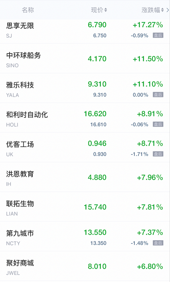(截图来自新浪财经APP 行情-美股-中概股热门板块)下载新浪财经APP