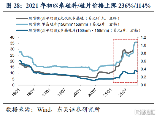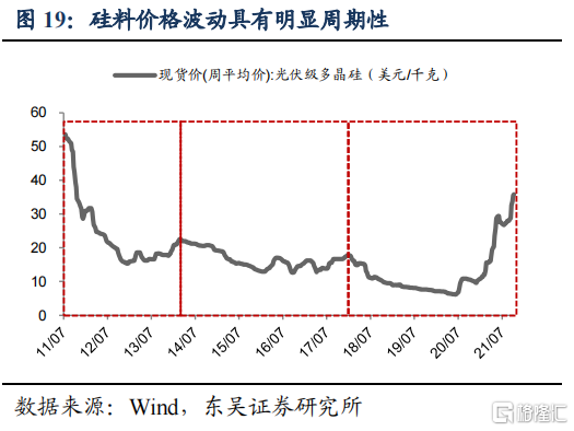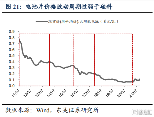 ⑤周期性由政策驱动转为市场驱动,产业链整体涨价短期或影响装机进程,2022年硅料产能释放缓解涨价压力。
