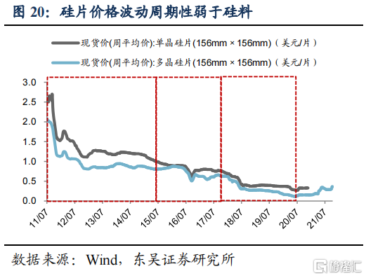 光伏平价时代,市场取代政策成为周期驱动力。2020年之前光伏度电成本较高,经济性尚未凸显,需求更多受政策补贴的影响,行业周期性与政策一致。2020年补贴政策全面退出,行业进入平价阶段,基于经济性考虑的市场真实需求出现,供需无形之手成为周期性的驱动力。这一点在2020年硅料涨价中表现突出,双碳目标下行业长期空间广阔,同时受平价上网刺激,下游厂商大幅扩张产能,但短期硅料供给有限,推高价格。