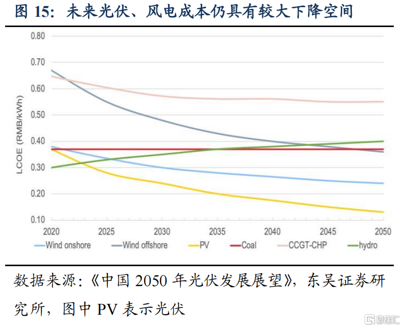 (3)2030非化石能源(风光发电):平价时代来临,光伏/风电发电60:40