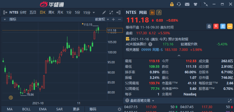 华盛资讯11月16日消息,网易(NTES)盘前涨5.5%,哔哩哔哩(BILI)盘前涨3.9%。今日,网易公布了2021年第三季度未经审计财务业绩。财报显示,网易Q3净收入为222亿元(人民币,下同),同比增加19%;非公认会计准则下,归属于公司股东的净利润为39亿元,同比增长5%。消息面上,多位游戏公司内部人士称,游戏版号或将在近期恢复审批。