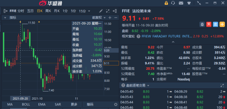 法拉第未来(FFIE)盘前跌2.09%,三季度预亏2.8亿美元,公司正调查财务欺诈指控推迟公布业绩。