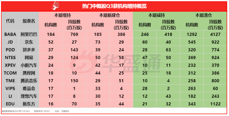 究竟是哪些机构在中概股“买买买”的队伍,又是哪些机构在卖呢?一起来看看机构对热门中概股的调仓: