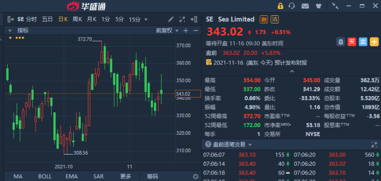 “东南亚小腾讯”Sea盘前涨近6%。Sea发布Q3财报,实现营收26.89亿美元,同比增长121.8%。