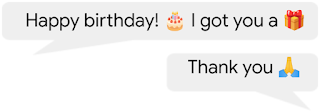 例如,在下面的对话中,🙏表达感激之情,🎂表达庆祝的表情,以及🎁是礼物的字面替换。类似地,虽然许多表情符号都与情绪相关的表达相关联,但情绪是微妙的、多方面的,在许多情况下,没有一个表情符号能够真正捕捉情绪的全部复杂性。