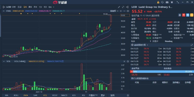 另一家新能源汽车公司Lucid周二暴涨23.7%,上市以来股价累计涨近130%,市值达超900亿美元,超过福特的790亿美元,紧追通用汽车的909亿美元位列全球第七。