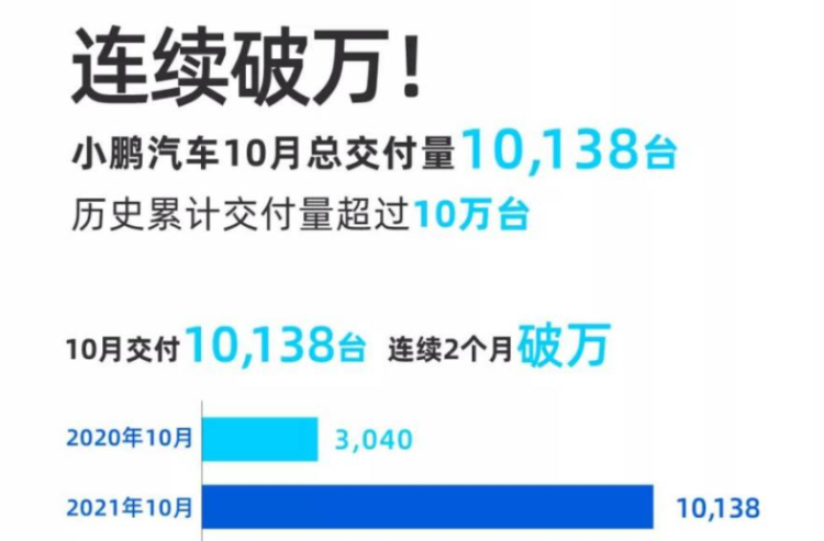 小鹏汽车作为中国造车新势力的佼佼者,继9月交付量首次破万后,10月交付量再度突破1万辆,让小鹏领跑造车新势力。