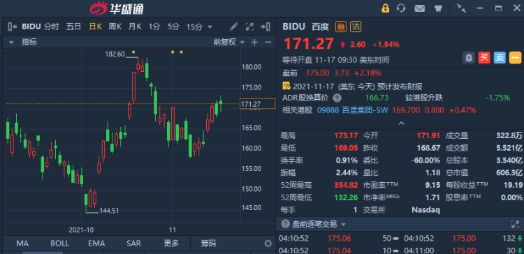 百度(BIDU)盘前涨2.18%,百度第三季度营收319亿元,同比增长13%胜预期,智能云营收连续两个季度增速超七成。