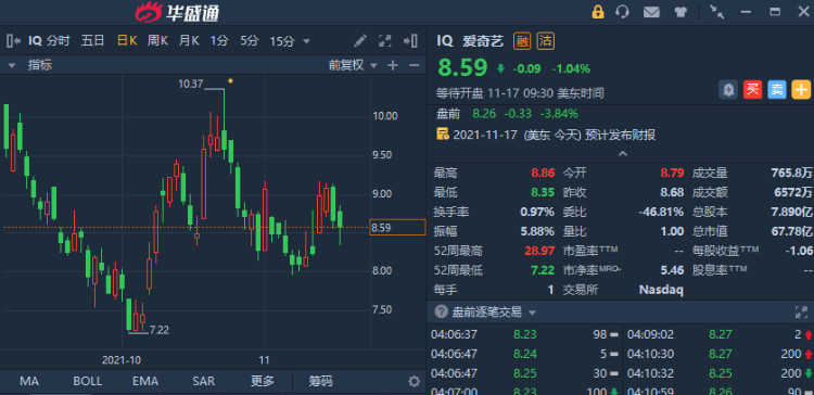 爱奇艺(IQ)盘前跌3.84%,第三季度净亏损净亏损17亿元同比扩大约47%且差于预期。
