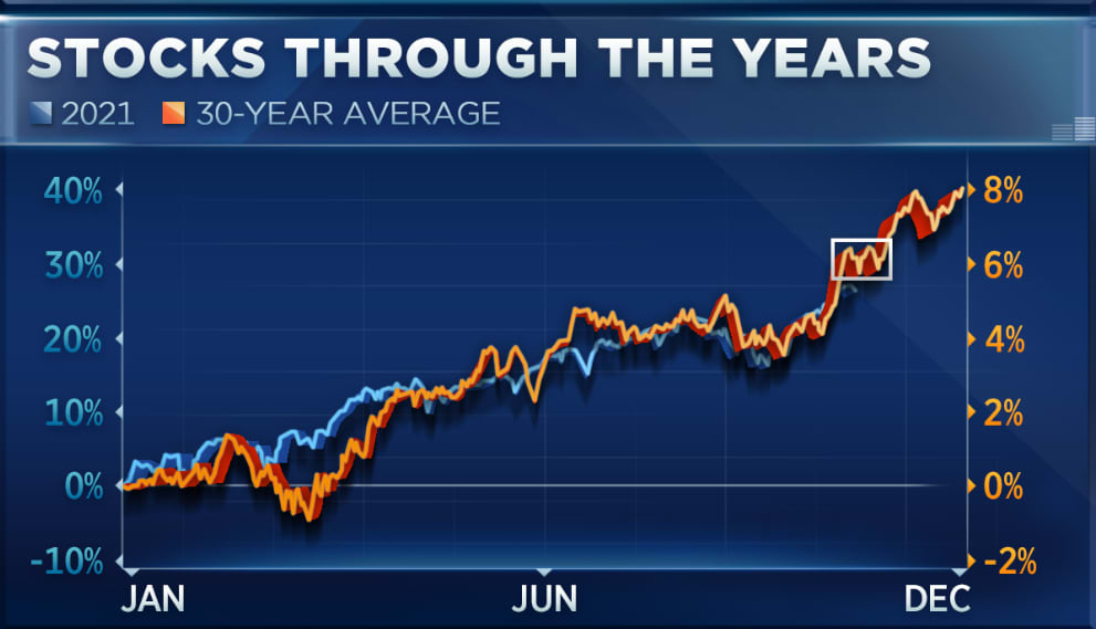 “在过去的30年里,市场倾向于在11月中旬进入平静期,然后在12月至年底恢复涨势,”Wald告诉CNBC。