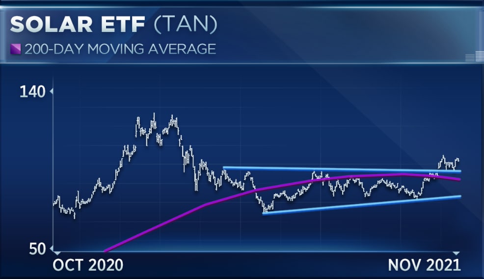 太阳能ETF(TAN)在过去的一个月中已经上涨了12%,但仍比1月的高点要低。