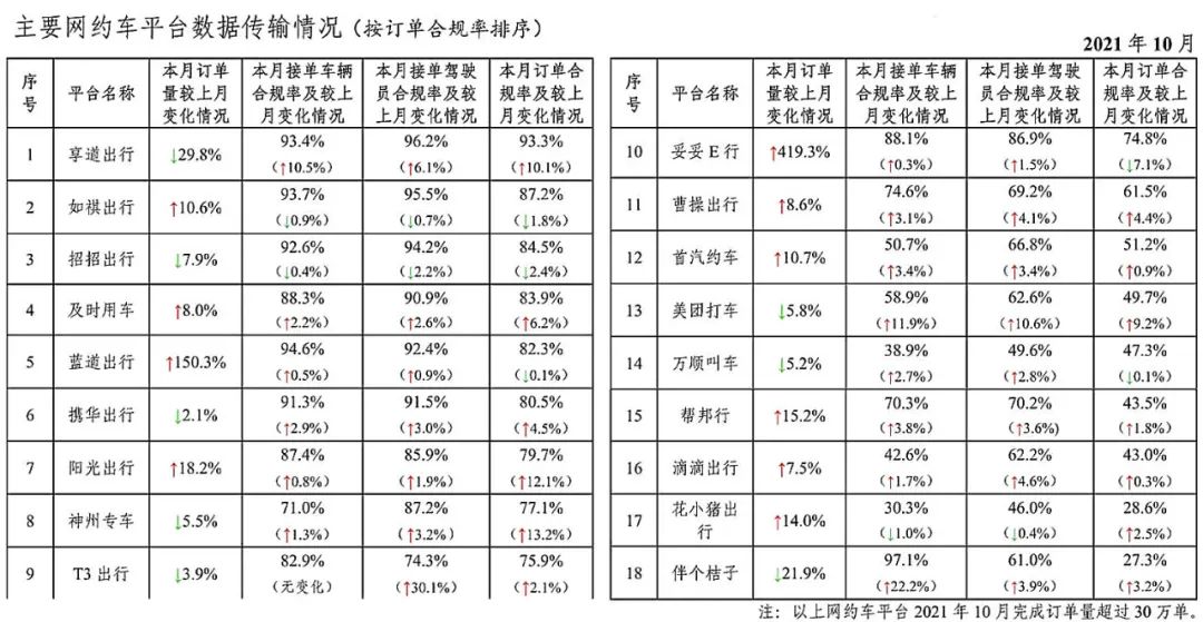 根据全国网约车监管信息交互平台,今年10月,网约车订单信息约在7亿单左右,平均每天2300万单;全国持牌出租车的日均单量,普遍估计在5000-6000万单左右。