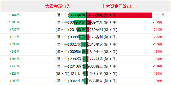 好仓(认购证及牛证)方面,周三美团、港交所、瑞声科技相关好仓分别约1484万、1004万及737万港元资金净流入;腾讯控股相关好仓单日约5515万港元资金净流出,思摩尔国际、药明生物、吉利汽车等相关好仓亦录得部分资金净流出。