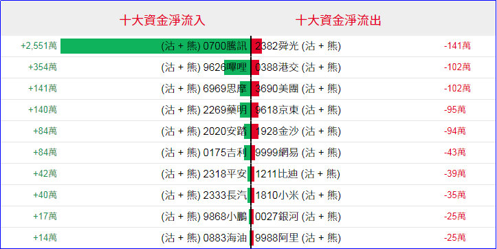 淡仓(认沽证及熊证)方面,周三腾讯控股相关淡仓获2551万港元资金净流入,哔哩哔哩、思摩尔国际相关淡仓也有部分资金净流入;舜宇光学科技、港交所、美团相关淡仓则录少量资金净流出。