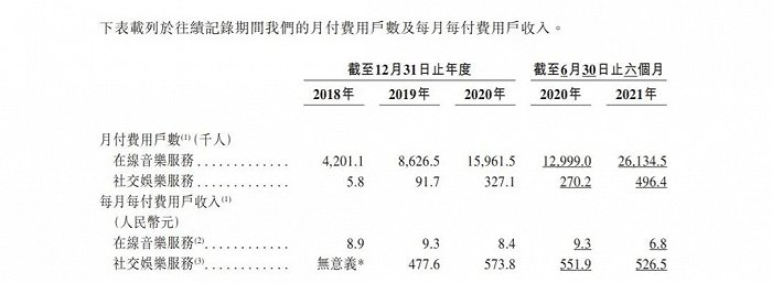 截至2021年9月30日,网易云在线音乐服务付费用户数2752万,同比增长超93%;社交娱乐服务付费用户为58.4万,同比增长93%。其中在线音乐板块收入从 2020 年同期 18.5 亿元增至 24.4 亿元,社交娱乐及其他板块收入从去年同期的 15.2 亿元增至 26.7 亿元,在线音乐服务收入占比 47.7%,社交娱乐服务和其他收入占比 52.3%。