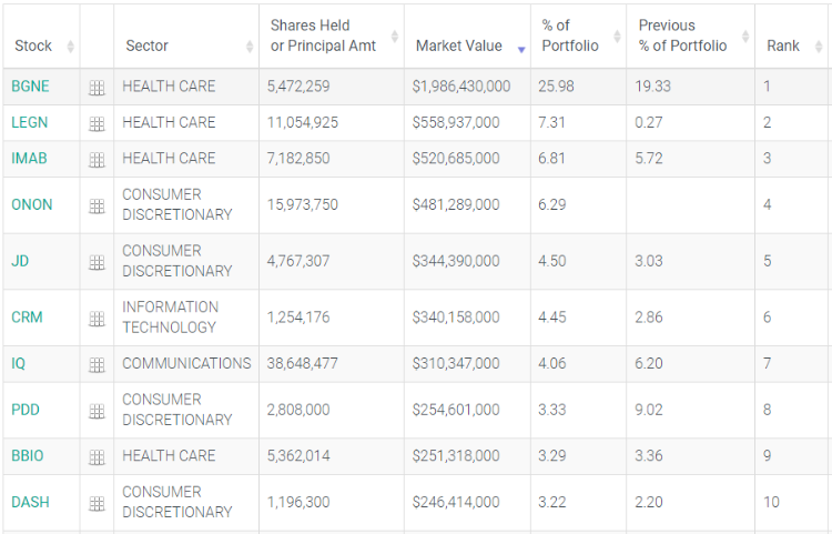 从高瓴三季度的操作来看,高瓴重押生物科技,其头号重仓股百济神州,这家全球知名的癌症创新药公司,其自主研发的BTK小分子抑制剂BRUKINSA是第一个获美国FDA批准和第一个获得突破性疗法认定的中国自主研发的抗癌药。