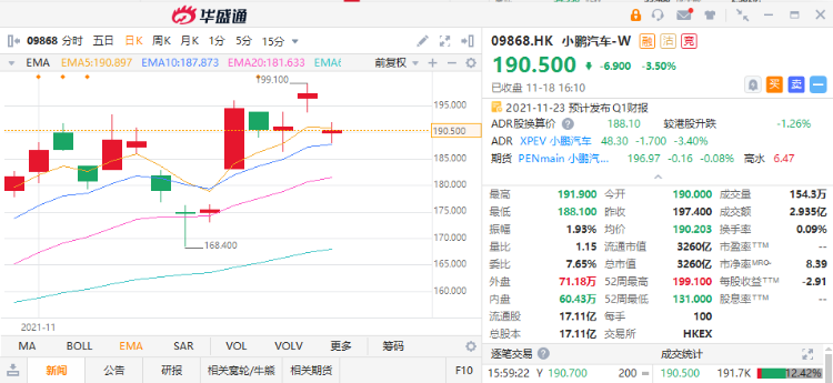 - 花旗发布研究报告称,予小鹏汽车-W“买入”评级,目标价由207.5港元升至338港元。报告中称,预计新能源汽车制造商将在实现自动驾驶技术竞赛中表现出色,因为它们在先进驾驶辅助系统(ADAS)发展方面具有竞争优势。花旗将公司2021-23年各年汽车销量由7.1万、12万及17万辆,上调为9.4万、16万及24万辆。