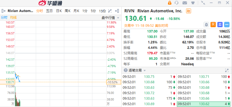 华盛资讯11月18日(周四)消息,新能源车企Rivian跌超10%,结束上市以来五连涨。Lucid跌超10%,次新股Sono Group则拉升后转跌,现跌超2%。