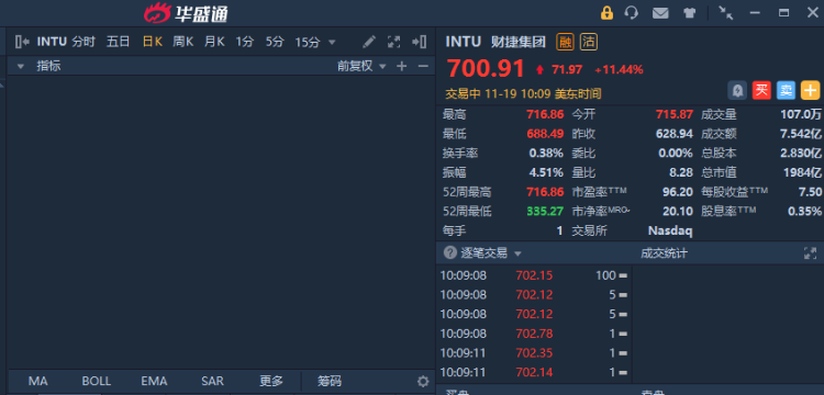 财捷(INTU)大涨11%,创历史新高。公司公布最新一季财报显示,季度销售额为20.1亿美元,同比增51.7%,且高于预期的18.1亿美元;收益为1.53美元/股,同比增62.77%,且高于预期的0.99美元/股。